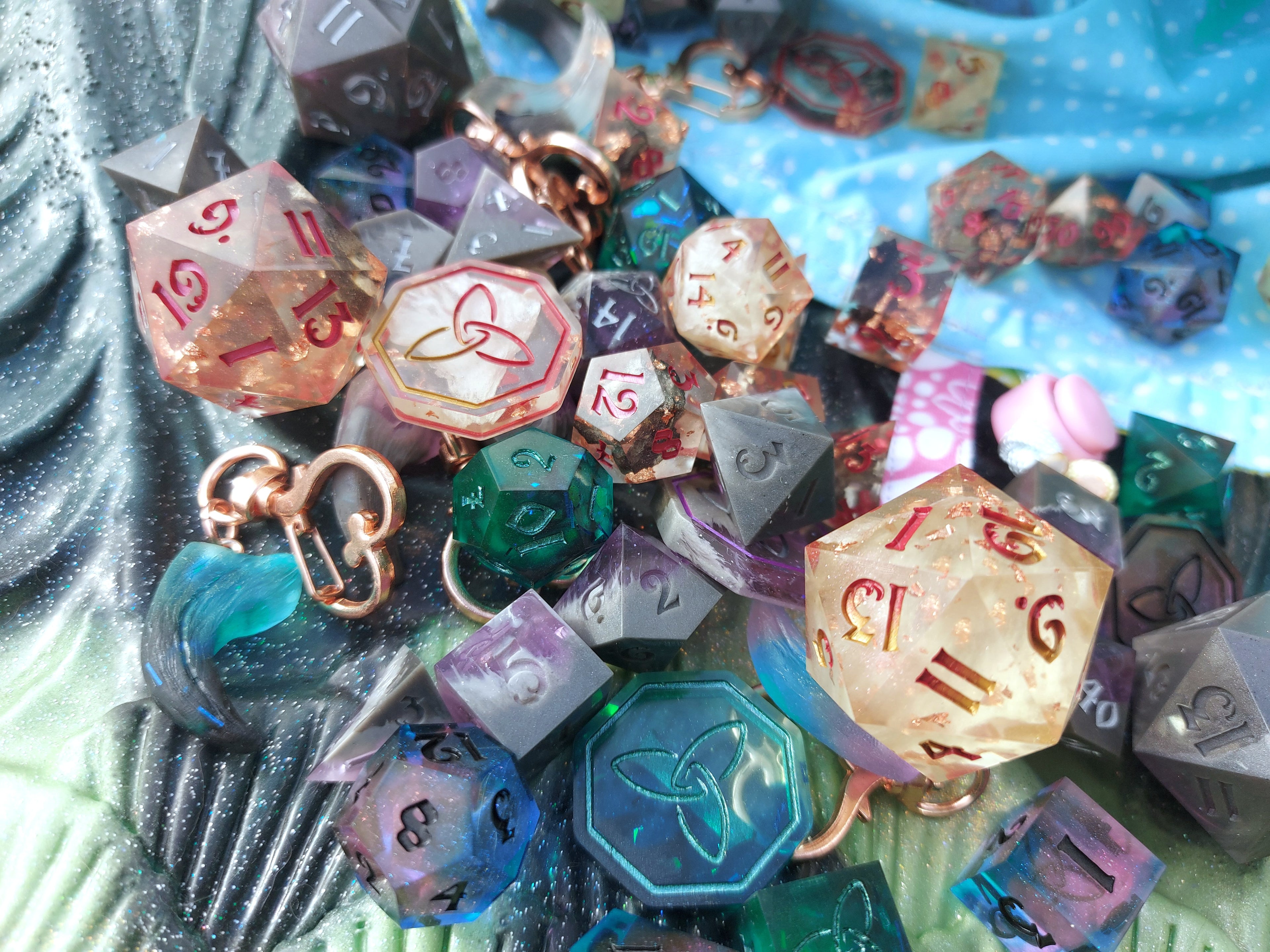 Find liquid core dice hereWe have both regular and Oversized D20 liquid cores available now! Full sets will be available in the future.