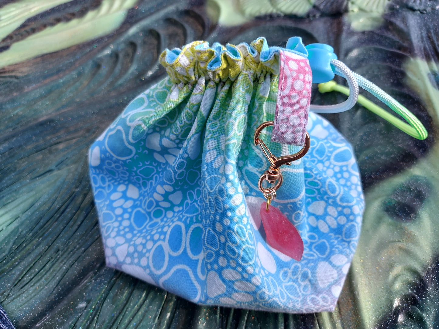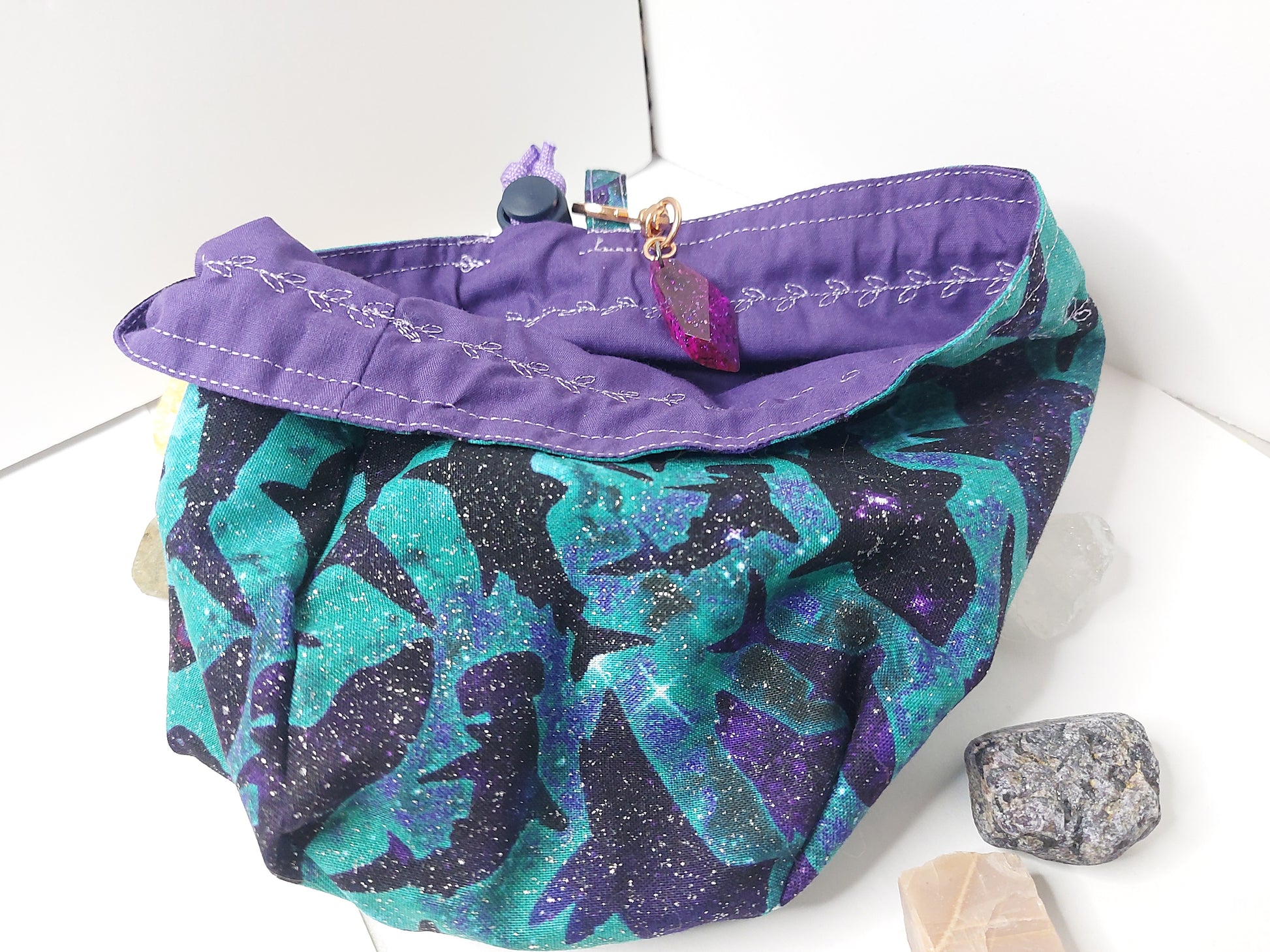 All standing dice bags come with a random crystal keychain. Examples of the keychains are in the listing.