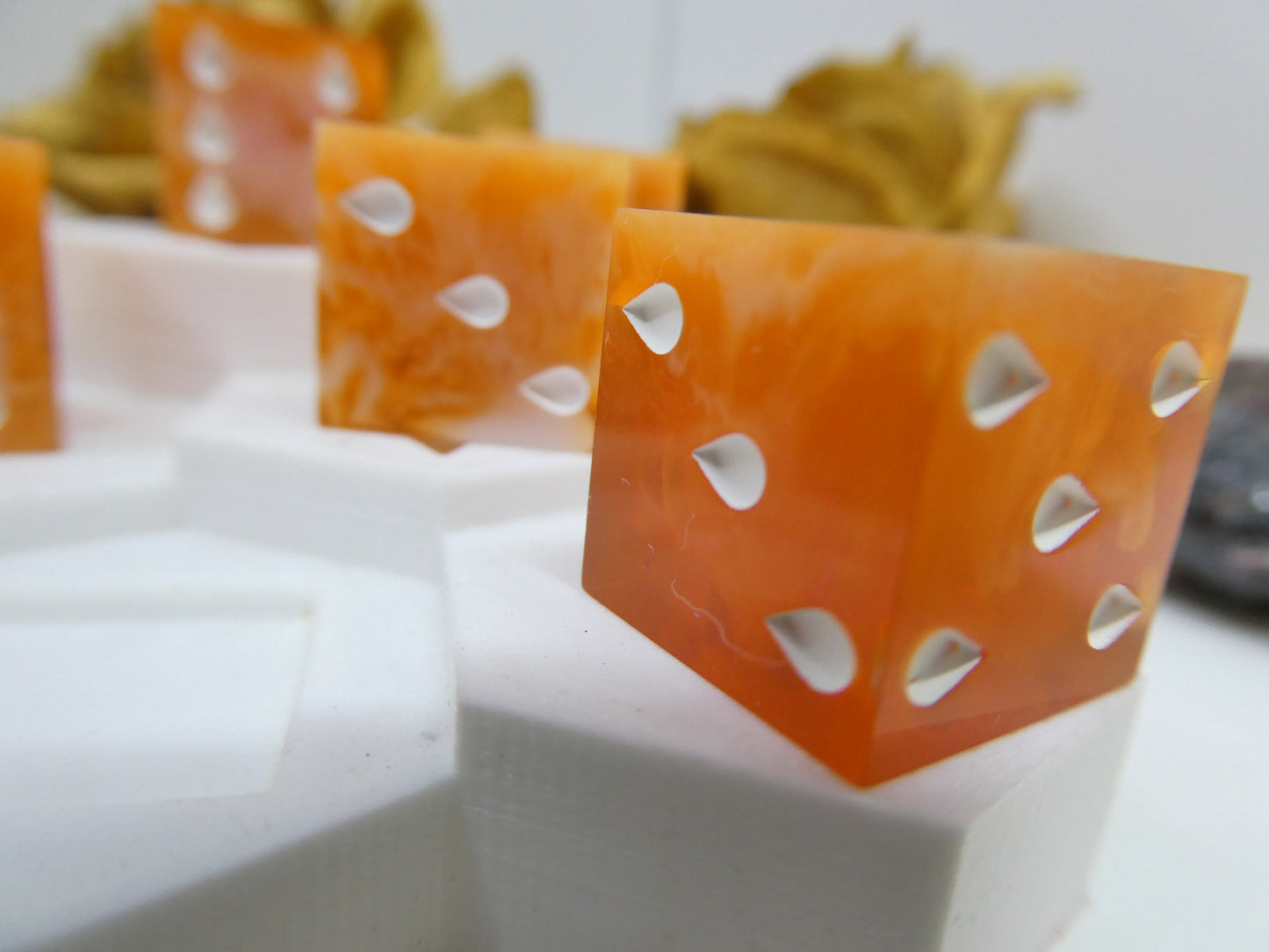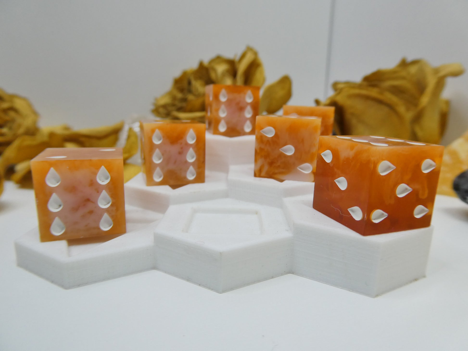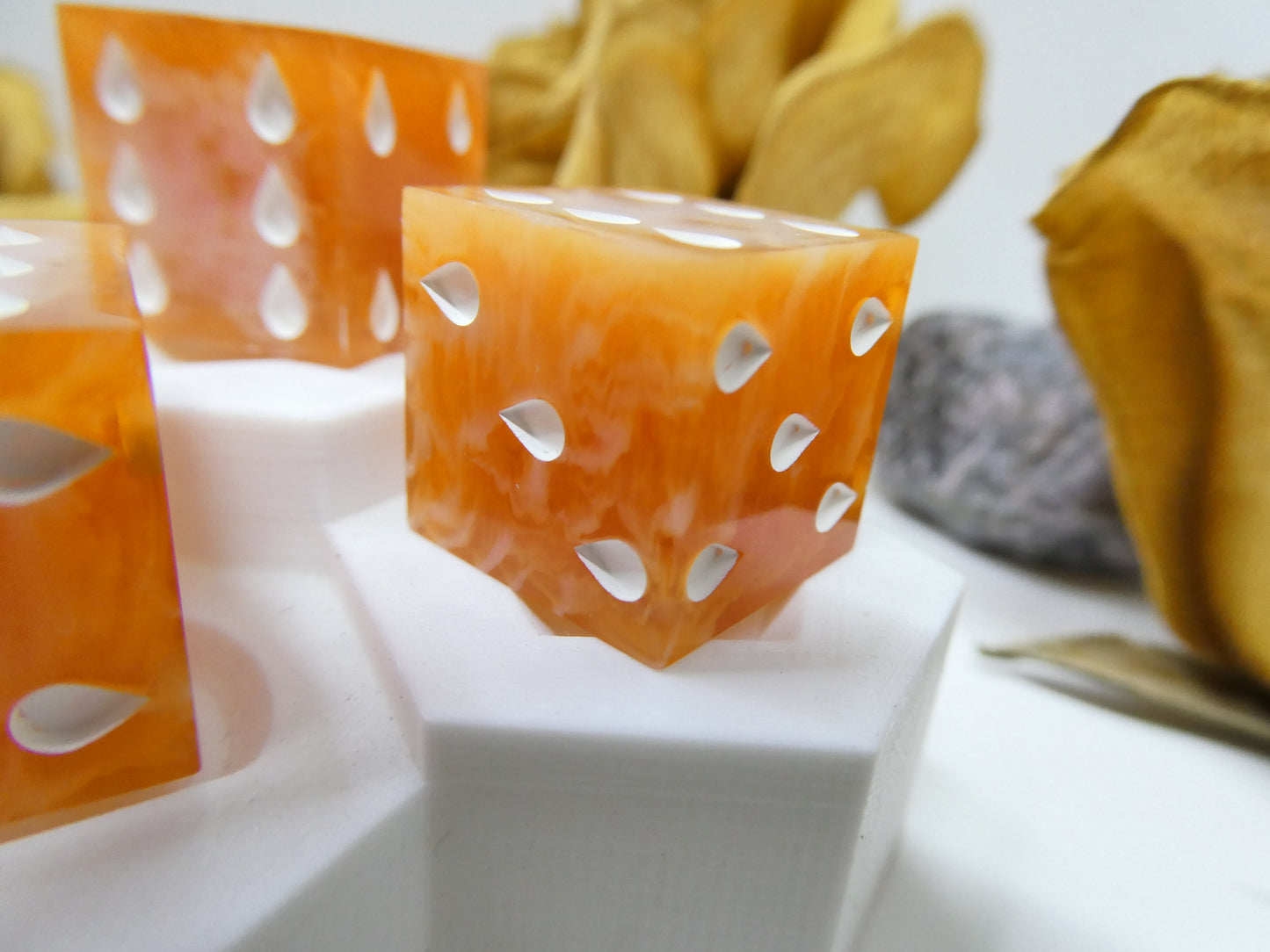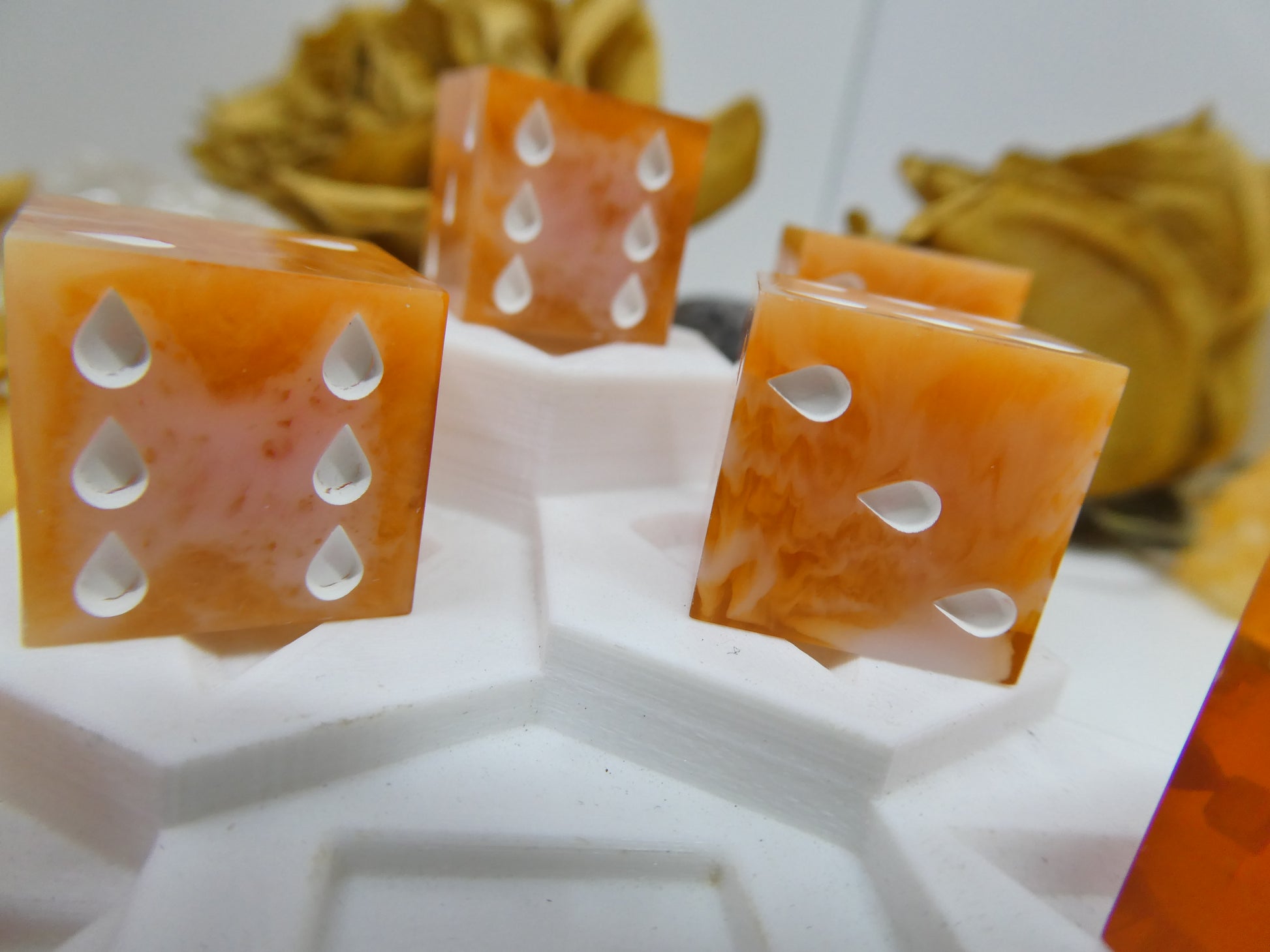 Thai tea is a marbled set made to match the colors of a fresh glass of iced Thai tea with half and half mixing in. The numbers are inked white.