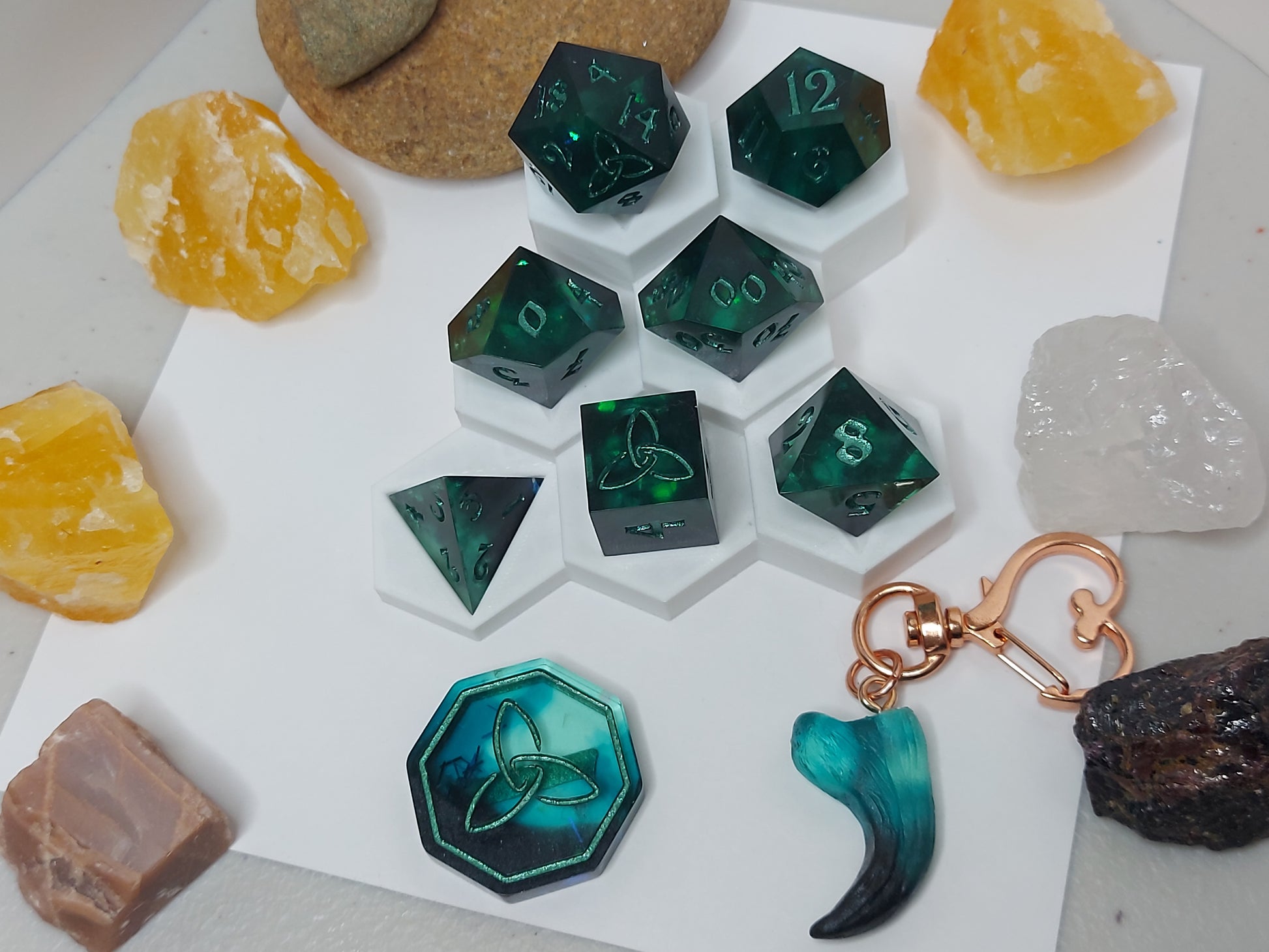 All 8 piece sets come with a matching keychain and small cotton drawstring bag of a random pattern.