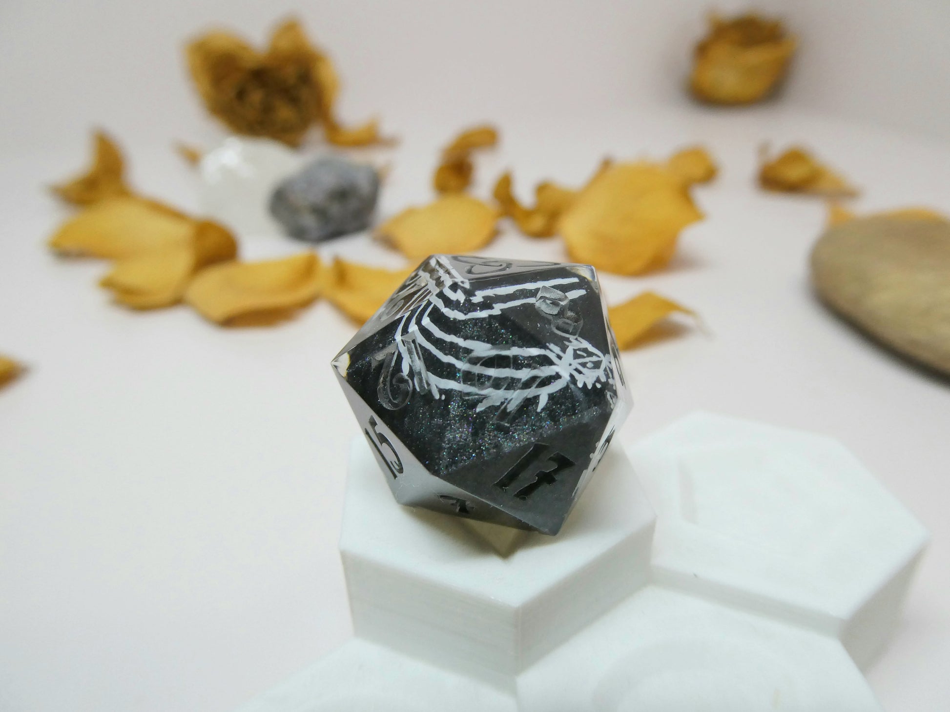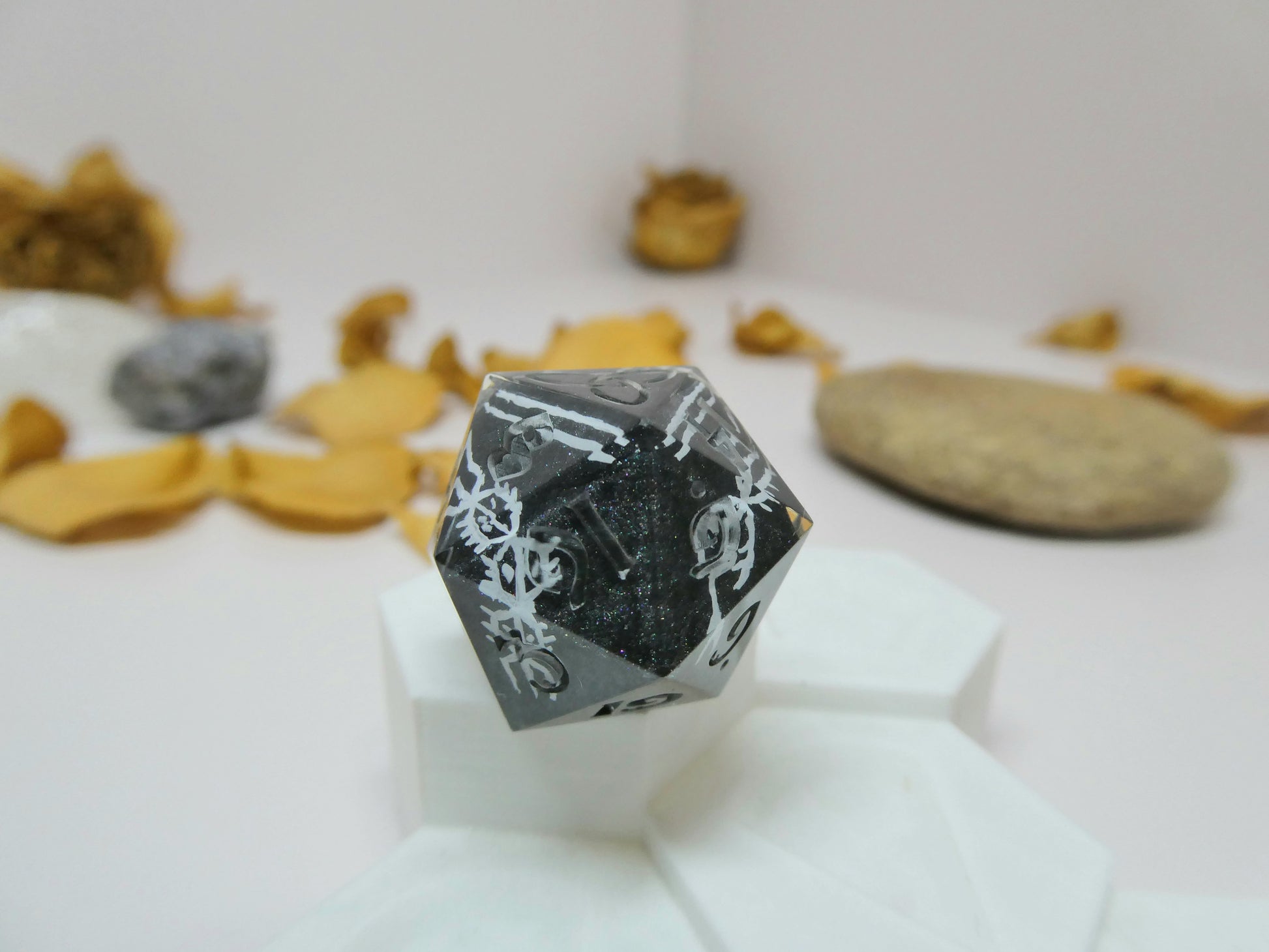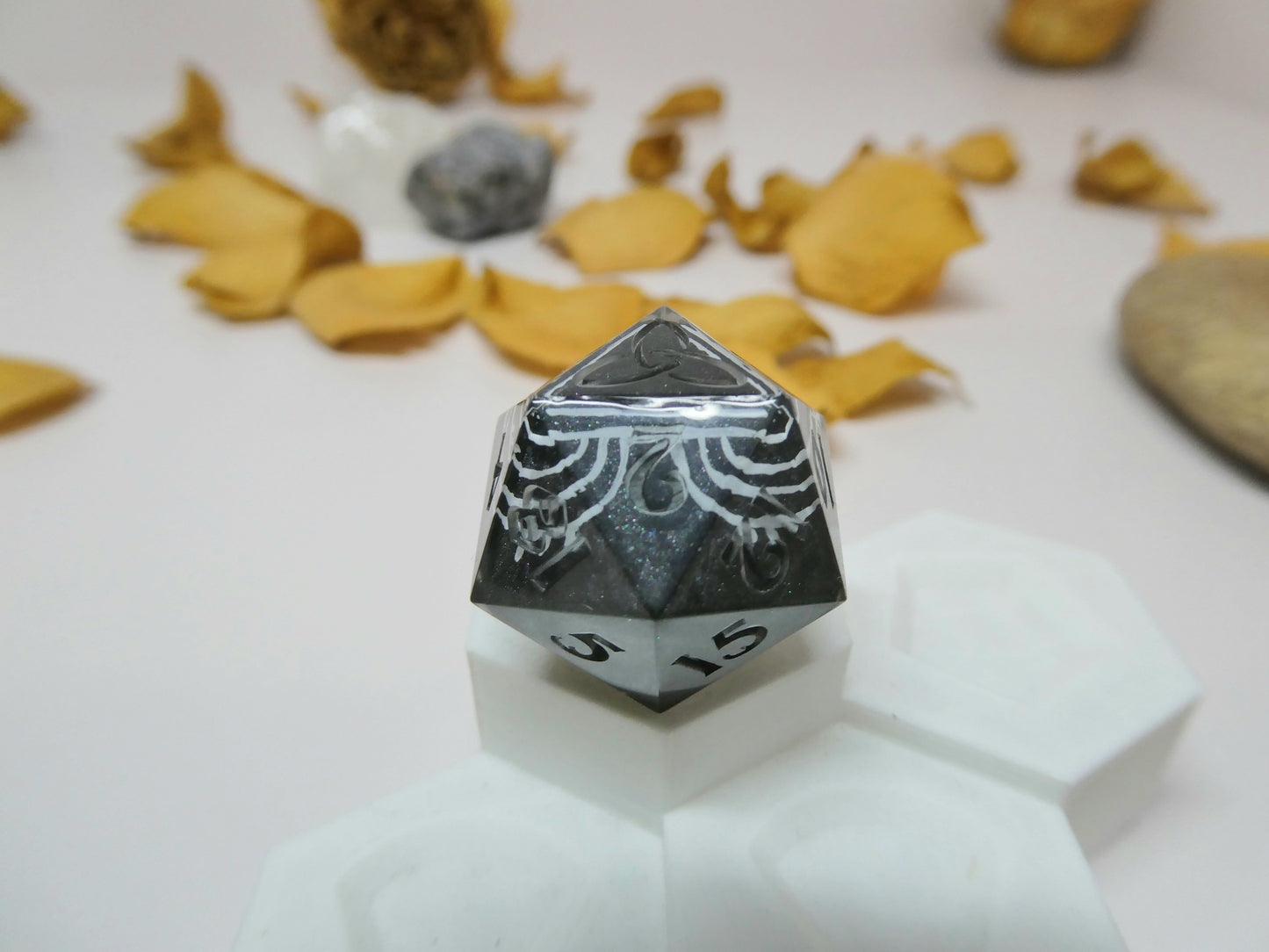Note: As all dice are handmade it's not uncommon for small marks or cosmetic flaws that will not damage their ability to roll fairly. Colors in person may be slightly different than how they appear in photos.